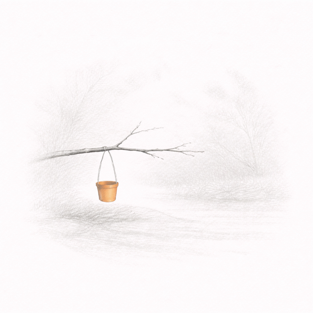 Everything narrows around it. The center thickens. Ache and uncertainty lodge there like the garbage bin — waterlogged, mud-packed, stuck.
